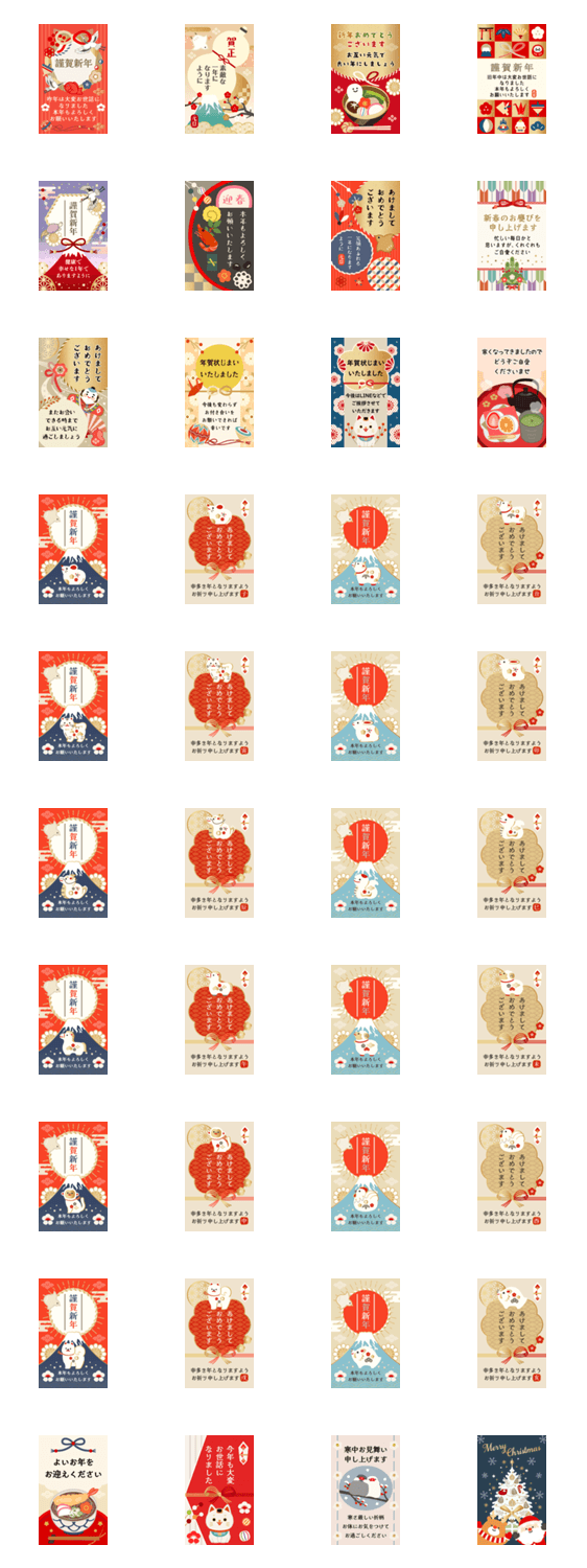 毎年使える豊富な文例◎(お正月/正月/年賀状じまい/謹賀新年/あけおめ/あけましておめでとう/大晦日/クリスマス/敬語)干支(子/丑/寅/卯/辰/巳/午/未/申/酉/戌/亥)午年/馬年 ※このスタンプはトークルームで大きく表示されるBIGスタンプです。