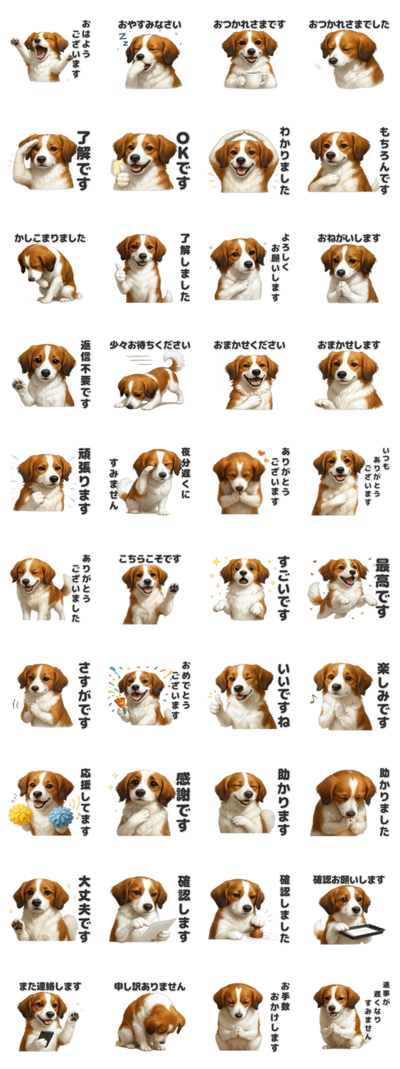丁寧で使いやすいコーイケルホンディエのスタンプです。/犬/いぬ/わんこ/白/垂れ耳/挨拶/日常/敬語/仕事/家族/友達/ママ/パパ/ふわふわ/癒し/大人