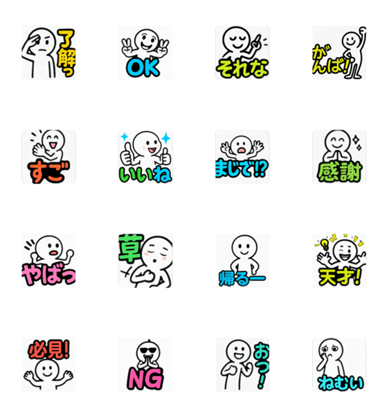 ゆるかわ/アニメーション/日常/感情表現/使いやすい/スタンプセット/LINEスタンプ/了解/感謝/草/ねむい/天才/感情