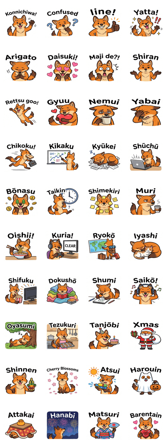カラフルな手描きのドール(アカオオカミ)スタンプ!日常の気分からオフィスのネタまで、現代生活を楽しく表現します。