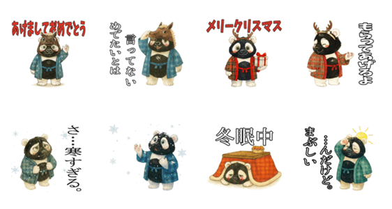 冬とお正月のハンテンパンダ。 天邪鬼だけど、ちゃんと季節は楽しんでいます。 クリスマスや新年のごあいさつ、寒い日のひとことにも使えるスタンプです。