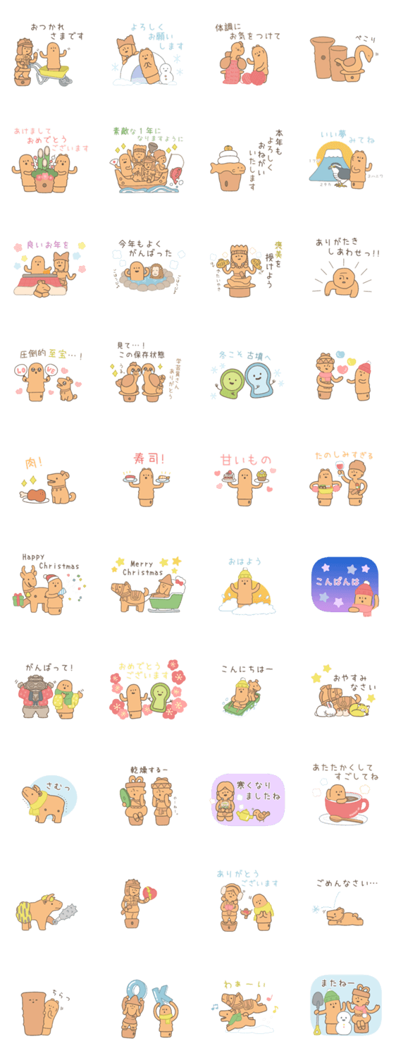 古墳時代のハニワ。踊る人々、巫女、武人、動物(犬、馬、鳥)、円筒埴輪。たまに土偶。ゆるい、かわいい、癒し。新年の挨拶、クリスマス、忘年会、推し活、歴史、博物館