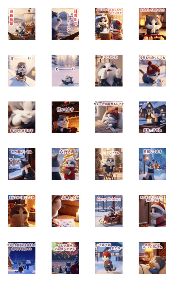 かわいい♡ハチワレ猫の年末年始を切り取ったスタンプです♪癒しプラス♪あたたかくてほっこりしたお正月を♪年賀状/お正月/大晦日/クリスマス/冬/おはよう/ありがとう