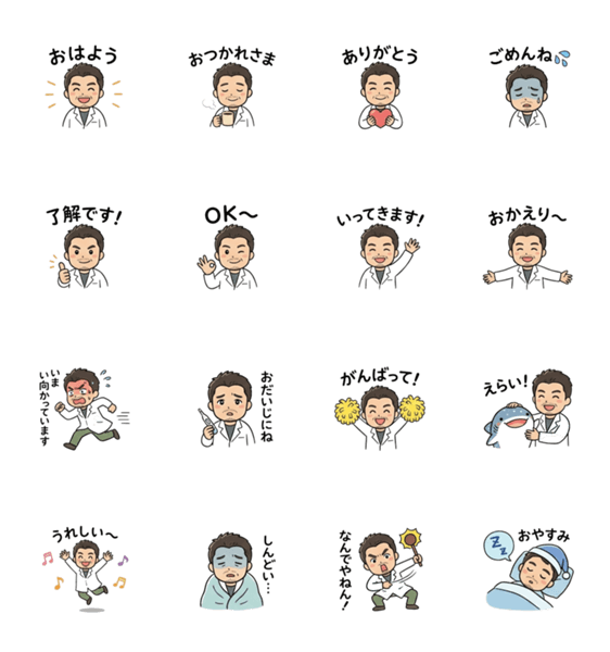 白衣を着た、ちょっと理系な先生のスタンプです。科学、実験、授業の話題はもちろん、日常の挨拶や連絡にもスマートに使えます。