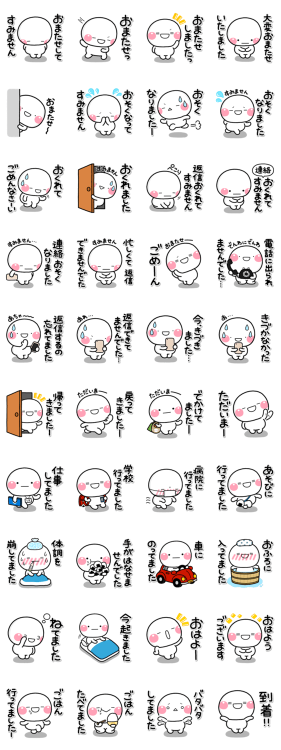連絡が遅れた時や、返信が遅れた時に使える便利なスタンプです。 いろんな種類があるので使い分けれます。