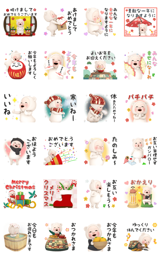 【飛び出す】クマタオル【冬・年末年始】 -LINEスタンプマニア