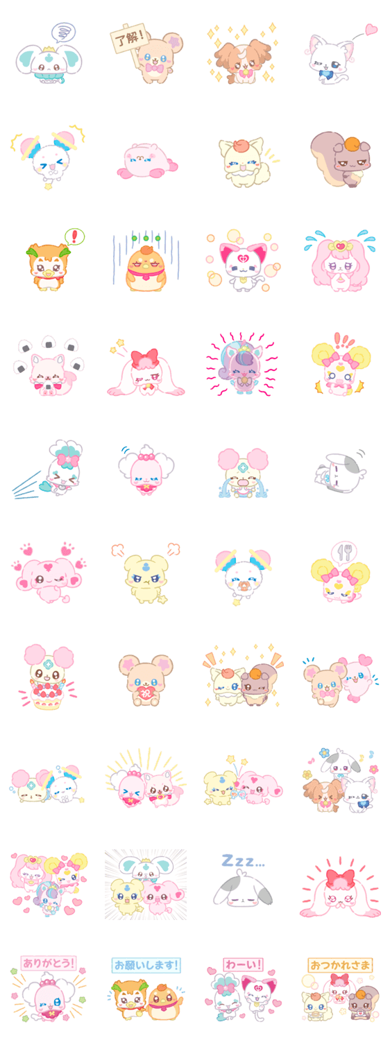 いろんな気持ちにつかえるぷちきゅあのスタンプだよ。 これまでに登場したみんなが大集合❤ ぷちきゅあと一緒におともだちとのトークを楽しんじゃおう!