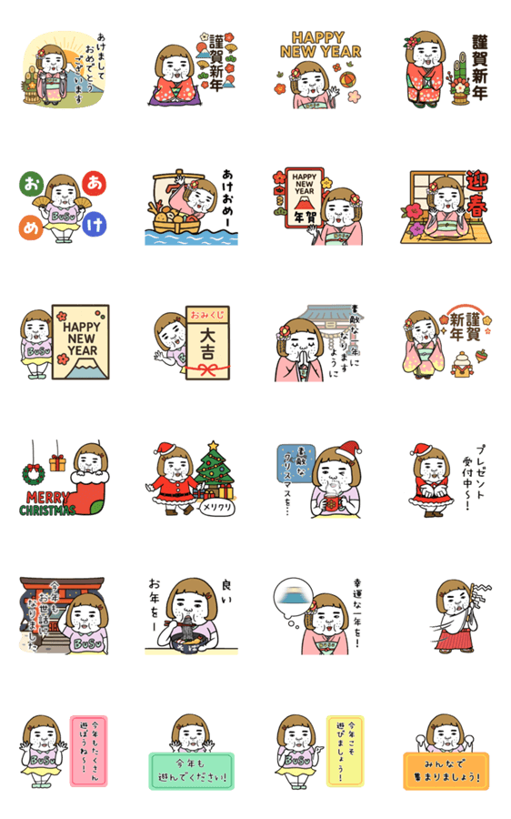 動く!憎めないブス【正月・年末年始】 -LINEスタンプマニア