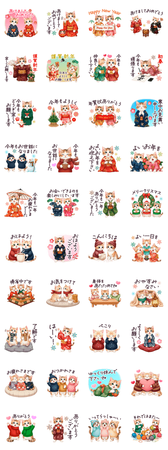 毎年使える きものねこ 年賀状セット 正月 -LINEスタンプマニア