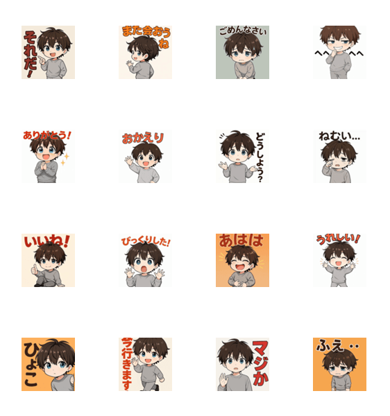 ゆるっとした男子の、日常で使いやすいスタンプです。 気軽に使える言葉を集めました。 普段のトークにそっと使ってください。
