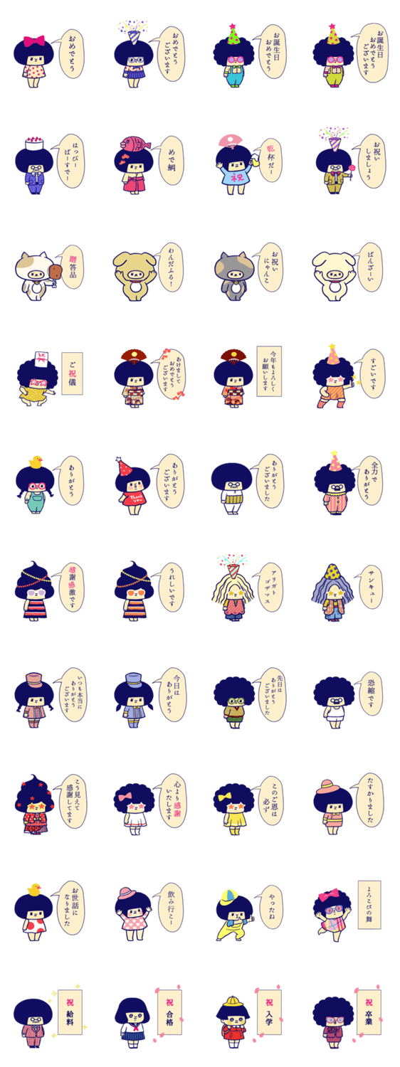 感謝とお祝いに特化したまるいひと。のスタンプ。安定のおじさんもいるよ。 おめでとう/便利/使える/ありがとう/日常/敬語/かわいい/シュール/ファッション/気持ち/伝える