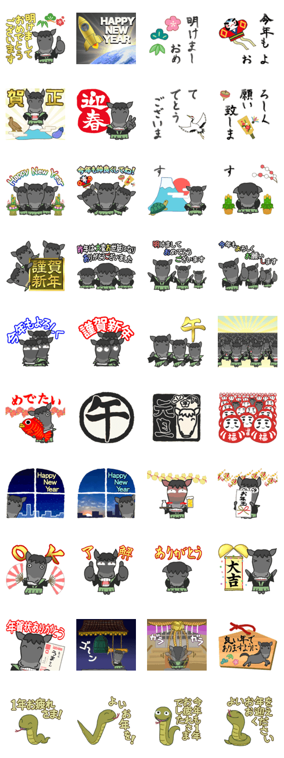 年賀!お正月!午年のスタンプ!(黒) -LINEスタンプマニア
