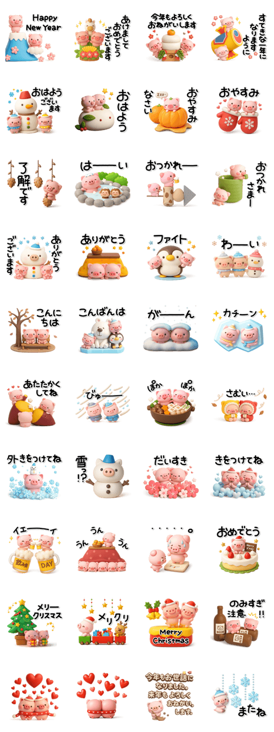 ~んな使える♡ぶたさんの冬スタンプ2026