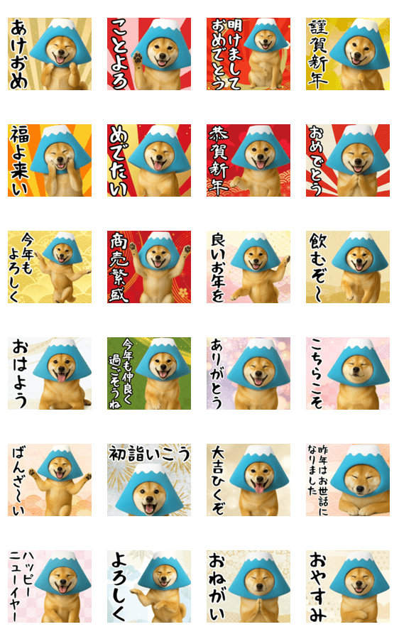 富士山をかぶった柴犬 年末年始 -LINEスタンプマニア