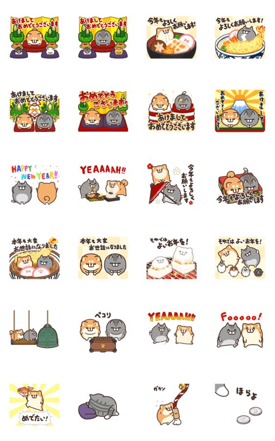 ボンレス犬とボンレス猫の動く正月用スタンプです。