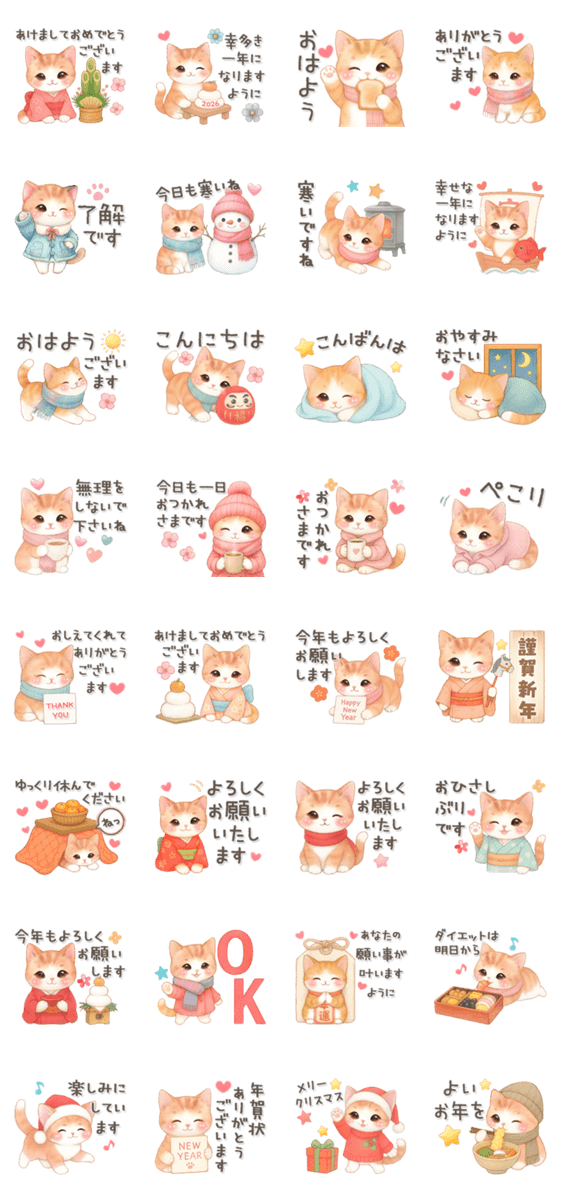 猫がいっぱい♡毎日使える年末年始2026 -LINEスタンプマニア