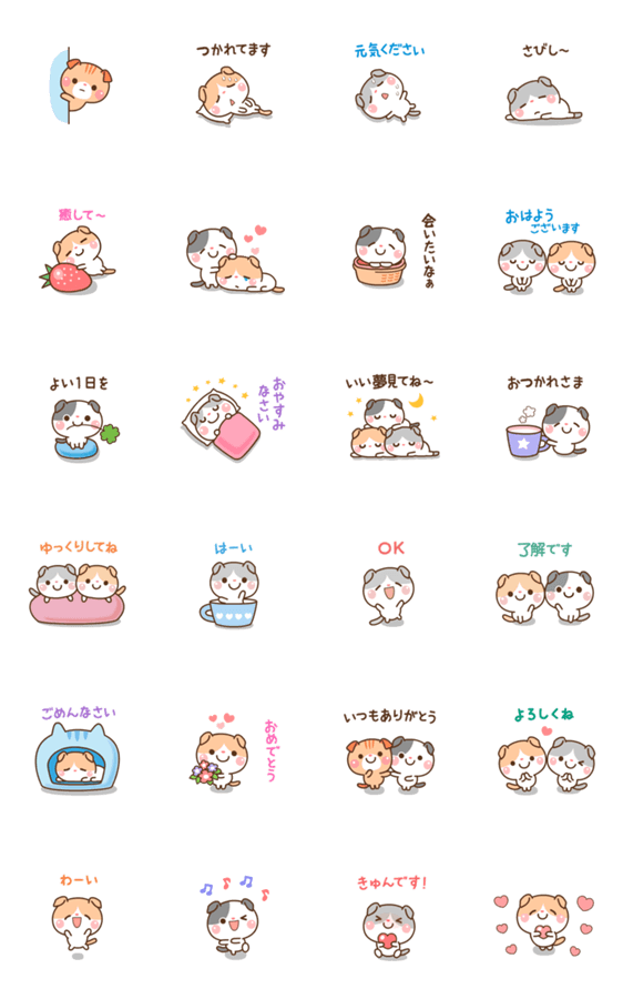 「たれ耳ニャンコ」のずっと使えるスタンプです♪ 「甘える気持ち」と「よく使う言葉」を集めました♫