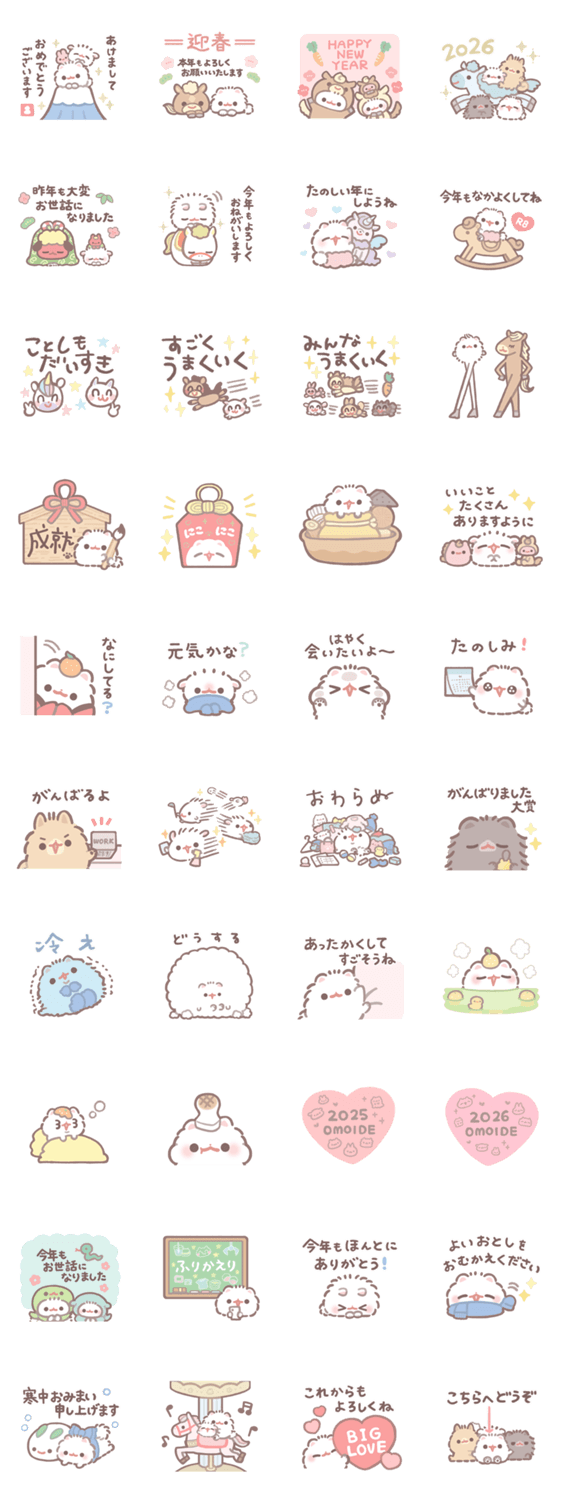 ポメラニアンもち達の年末年始につかえるスタンプ・2026年午年バージョンだよ。