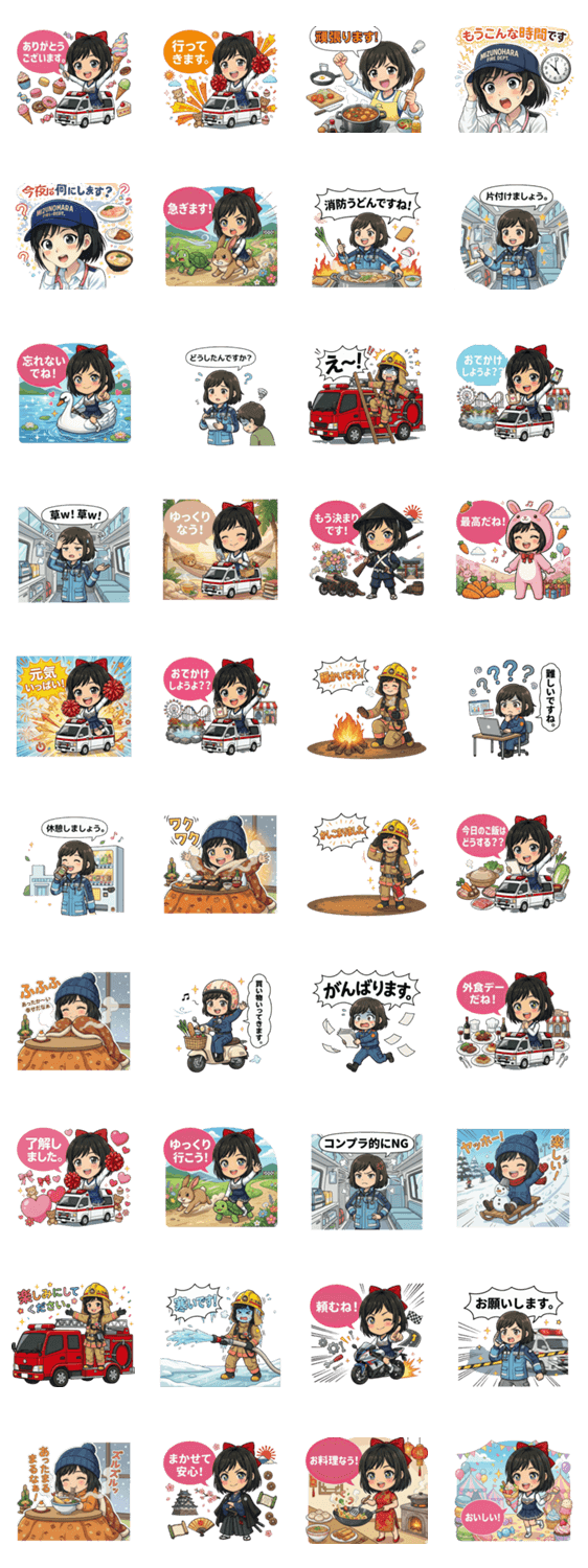 元気でやさしい救命士えりちゃんのスタンプです。 仕事中のひとことから日常会話まで、応援や挨拶に使いやすいスタンプ集。