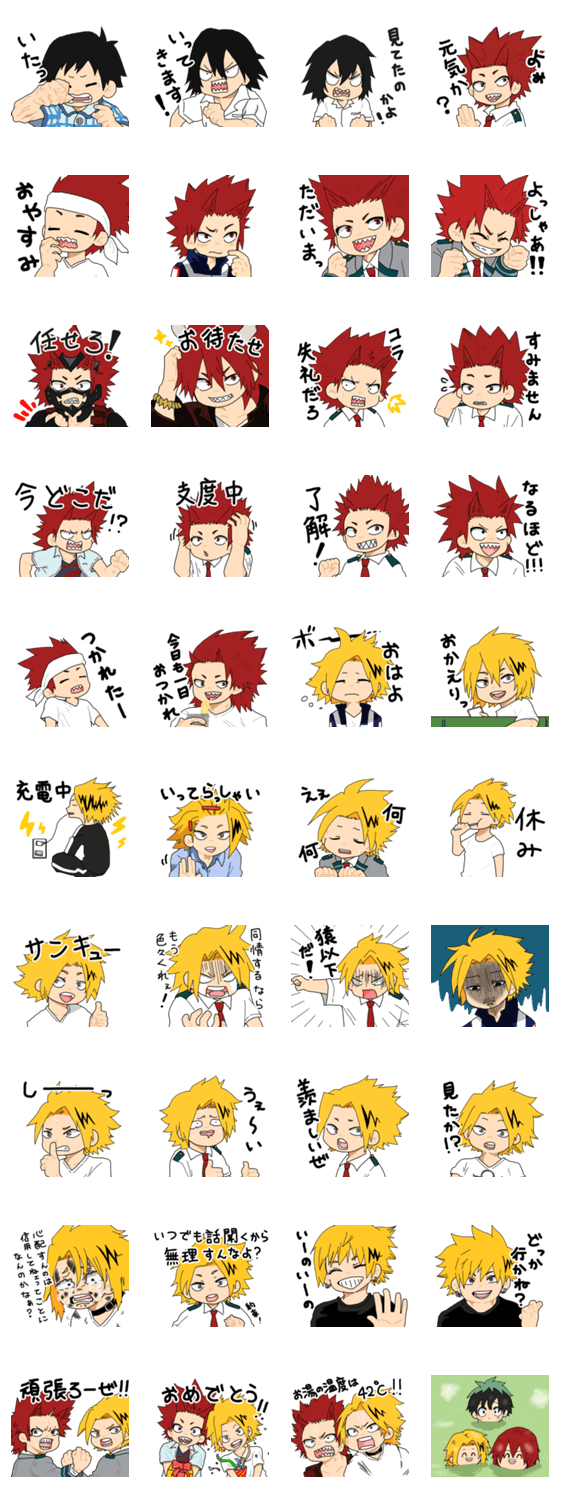 僕のヒーローアカデミアコラボの切島鋭児郎と上鳴電気オンリースタンプです(一つだけデク有(笑) ※LINE Creators Collaboration 僕のヒーローアカデミア参加スタンプです。 ※LINE Creators Collaboration 僕のヒーローアカデミア参加スタンプです。