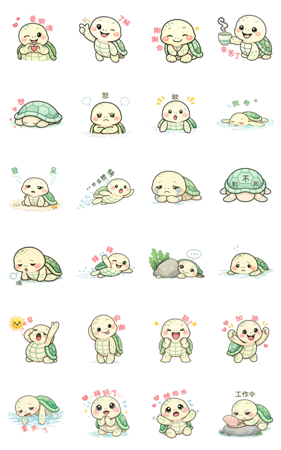 | スタンプ説明 | Don not rush. Do not try too hard. A laid back sea turtle shares gentle everyday phrases like thank you and take it easy, bringing calm and ease to daily chats. |
