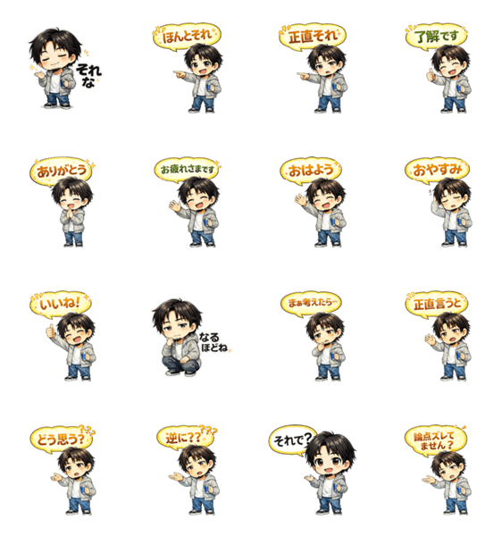 冷静で落ち着いたリアクションを、かわいいちびキャラで表現した日常用スタンプ。 ネットでおなじみの思考型リアクションを、会話で使いやすくまとめました。