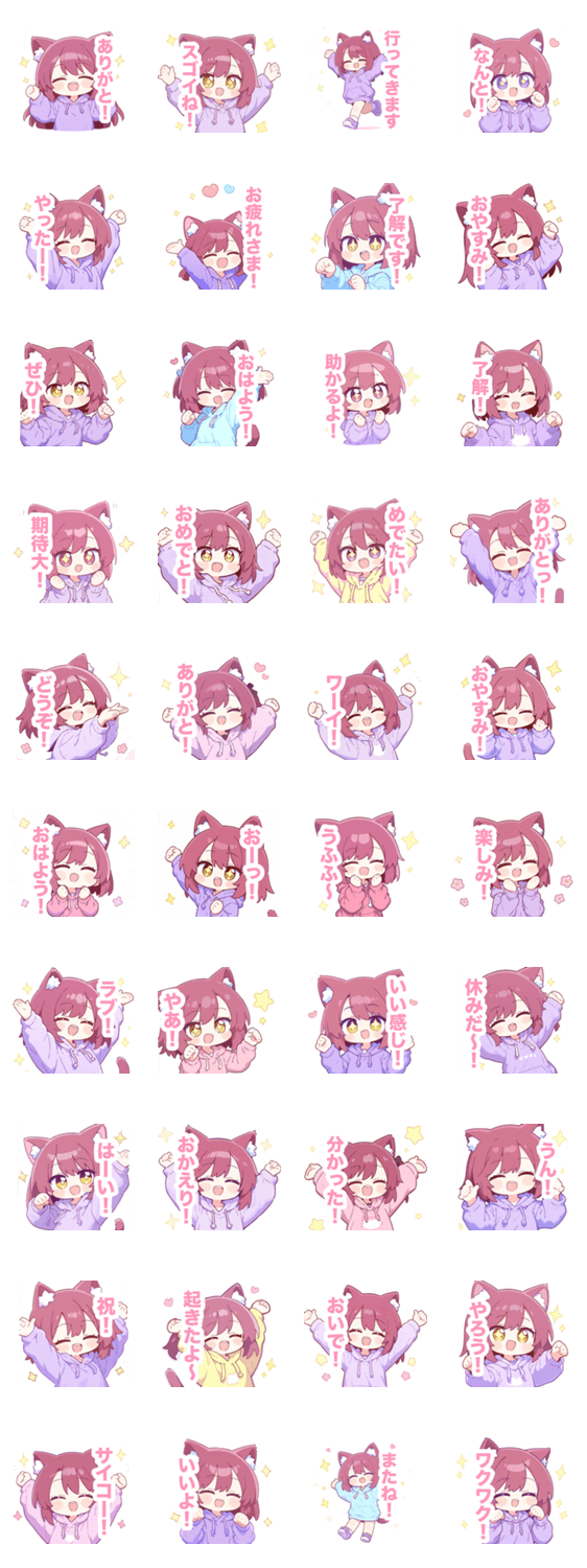 マゼンタ猫耳のパーカー女の子スタンプ -LINEスタンプマニア