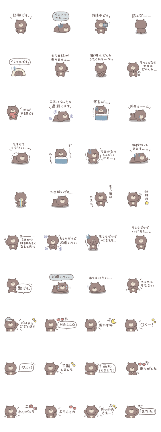 一つあると便利な小さくてかわいいくまのスタンプです。 くま/大人可愛い/シンプル/あいさつ/吹き出し/くすみカラー/省スペース/体調不良
