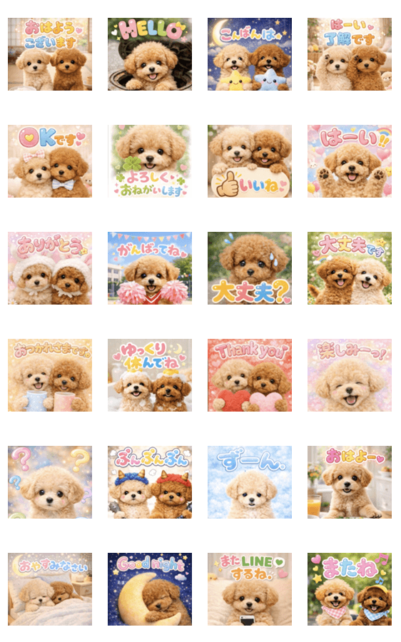 可愛いトイプードルが飛び出して動く♪日常会話・挨拶のポップアップスタンプです♪