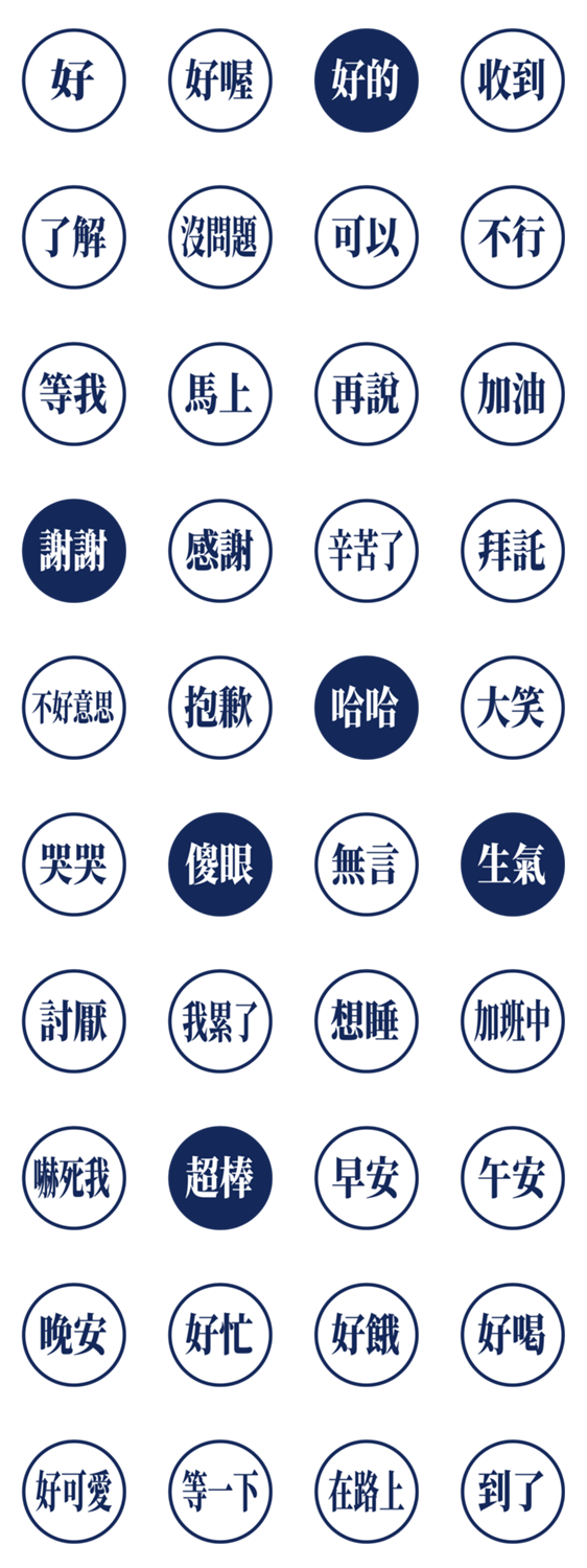 中国語(繁体字)の日常表現です。#ミニマル テキスト 台湾 漢字 もじ 返答 基本 シンプル 使いやすい ハンコ 判子 返事 連絡 仕事 日常 会社 ビジネス たおずん
