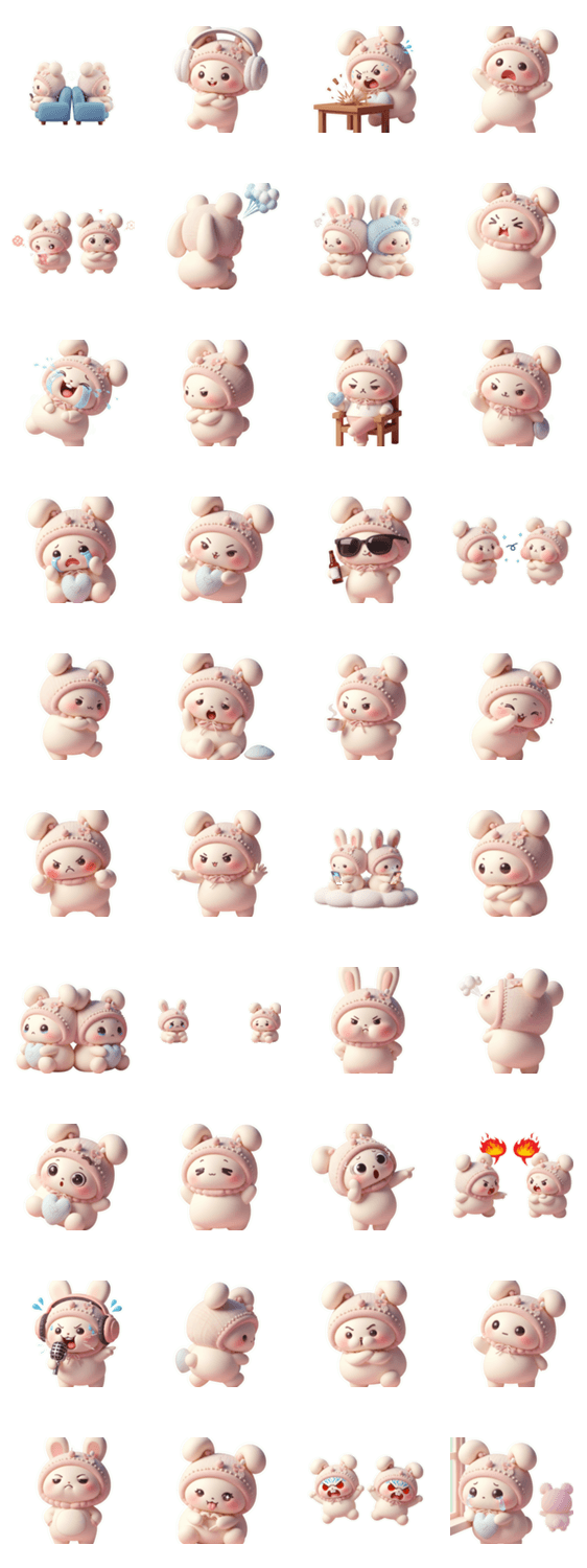 もふもふで癒やし系だけど、ちょっと世を拗ねた表情がたまらない!色々な状況に疲れて「もう好きにして!」と諦めモードになった時にぴったりなうさぎスタンプです。可愛い