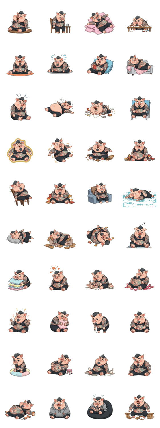 刺青入りのヤンチャなイノシシが、今にも爆発しそうなほどの「激おこ」状態!ムカつくことや、我慢の限界を超えたときに使ってください。メガトン級の怒りをスタンプで可愛