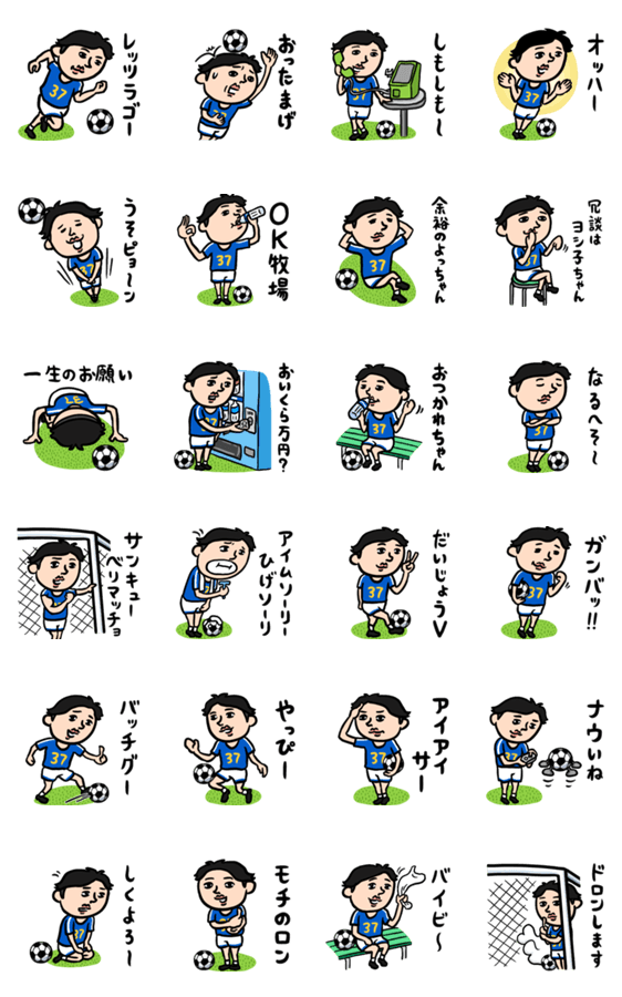 ゆるいサッカー男子がフットボール好きに昭和レトロで送る便利なスタンプ。日常会話からスポーツ観戦まで毎日使えるプロにはなれない部活レベルの面白いスタンプです。