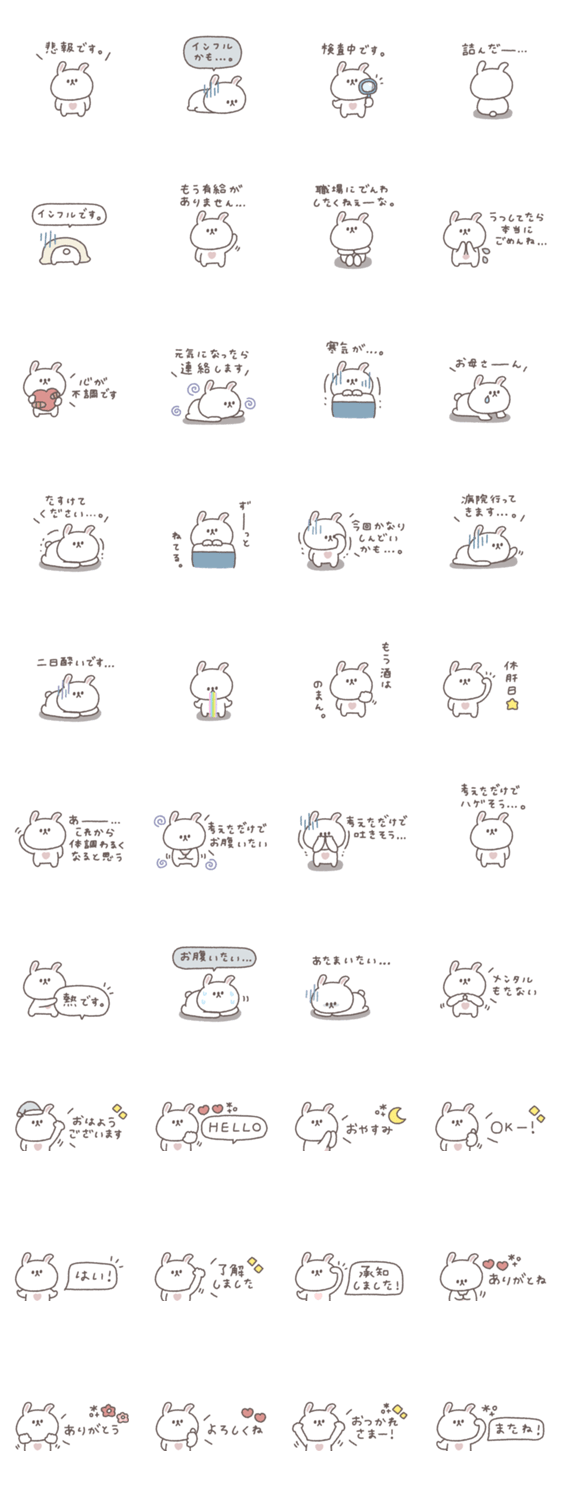 一つあると便利なかわいいうさぎのスタンプです。 うさぎ/大人可愛い/シンプル/あいさつ/吹き出し/くすみカラー /省スペース/体調不良