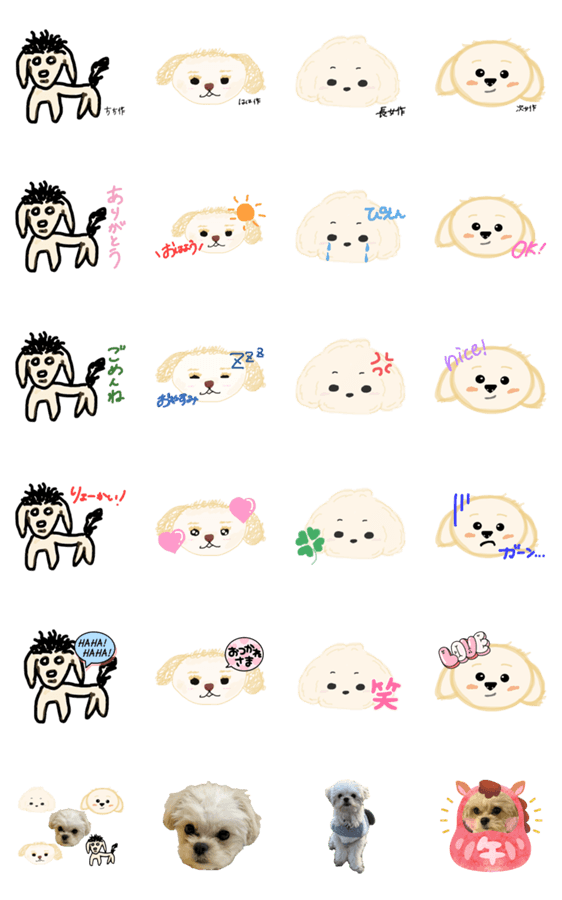 我が家みんなでぽぽの似顔絵を描いたら、個性出すぎて面白かったのでスタンプにしました!