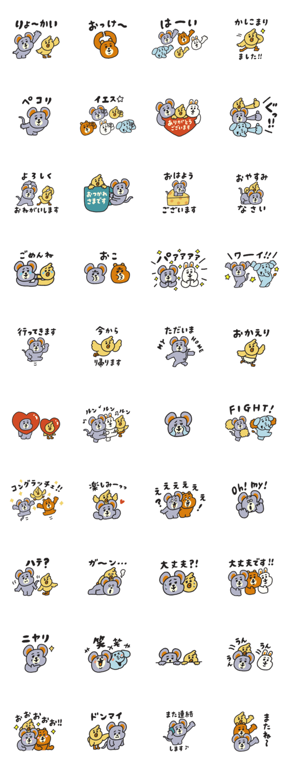 ねずみさんと仲間たちの毎日使いやすいスタンプSET♪