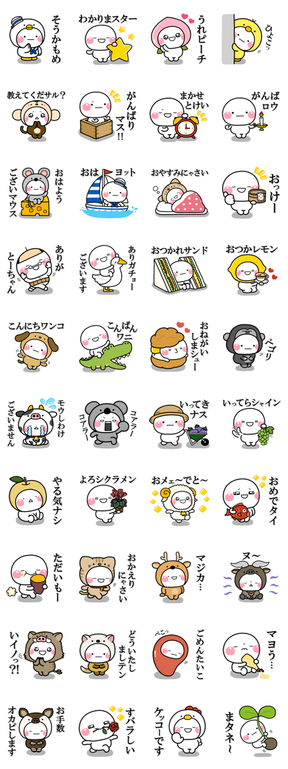 しろまるの駄洒落スタンプです。みんなでずっと使える内容を揃えましたのでスタンプ初心者の方にもオススメです。大人フォントver【作:いしいともこ】