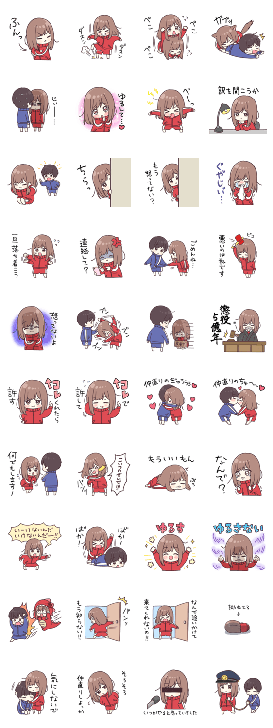 ケンカしてもやっぱり大好き!仲直りしたい気持ちをジャージちゃんが代わりに伝えてくれるスタンプだよ