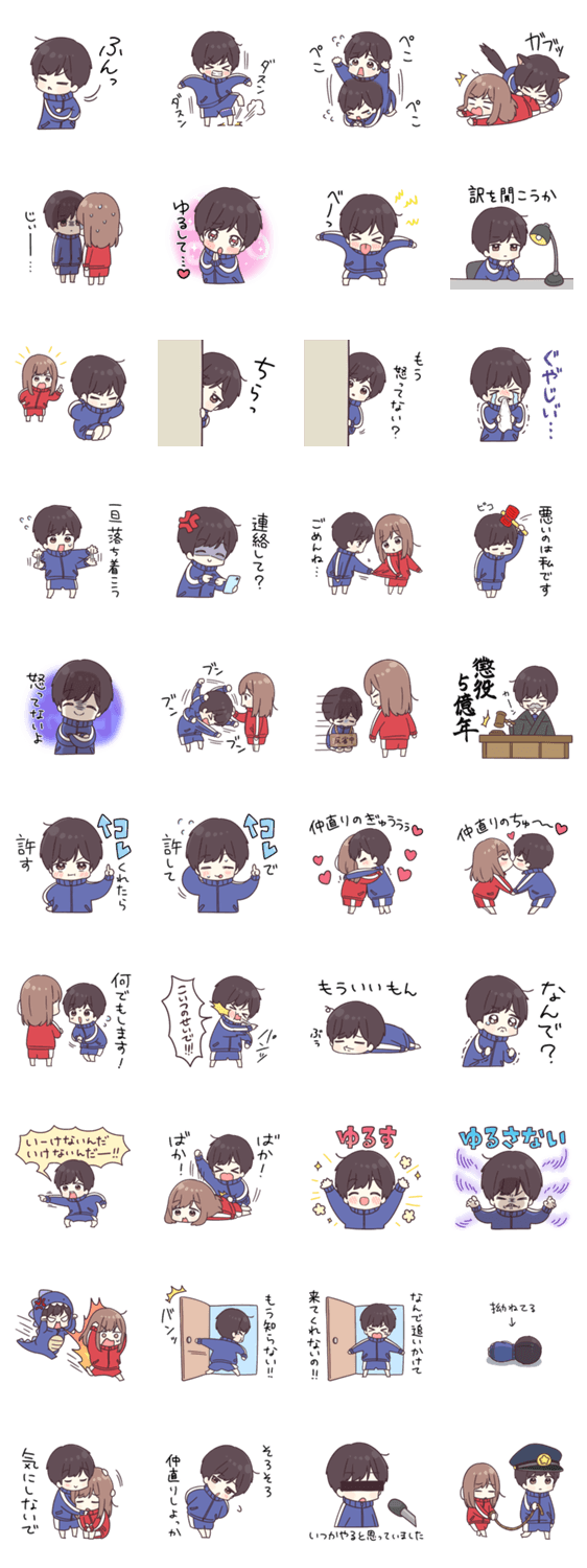 ケンカしてもやっぱり大好き!仲直りしたい気持ちをジャージくんが代わりに伝えてくれるスタンプだよ