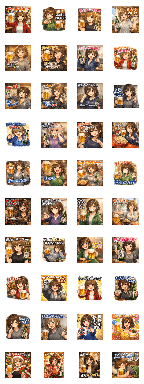 一年中使えるアル中ガールズ -LINEスタンプマニア