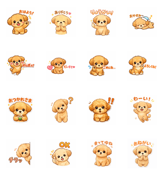 マルチーズ×トイプードルのミックス犬、ちゅらちゃんのスタンプです。つぶらな瞳と愛くるしい仕草で、トークをほっこり癒やします。