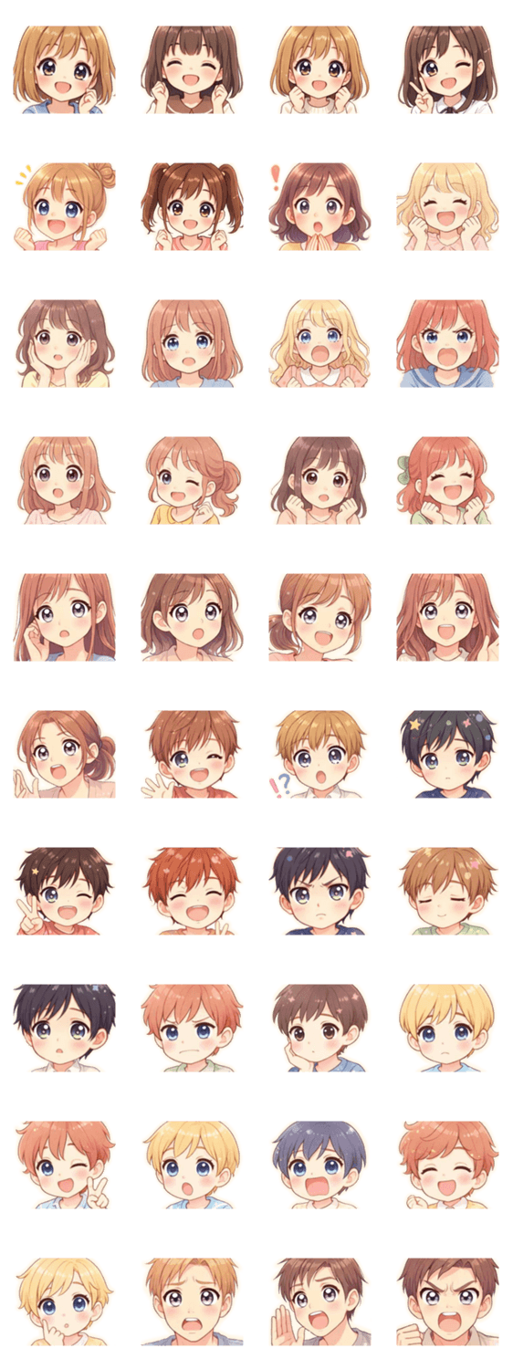 人物4 少女マンガ風,少女,少年,組み合せ用 -LINEスタンプマニア