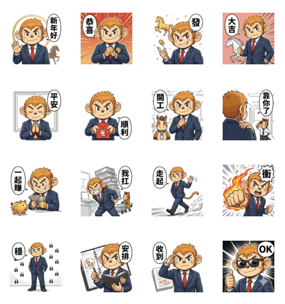 | スタンプ説明 | Cool Chinese New Year greetings with Year of the Horse vibes. Short, stylish stickers for chats. Wish luck, confidence, and a smooth new year. |
