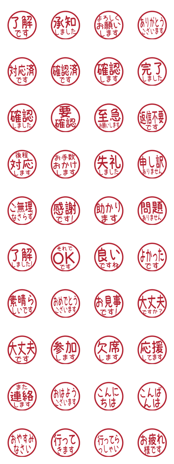 シンプルな敬語のはんこ風スタンプです。毎日の連絡や仕事の返事に使いやすいデザインです。