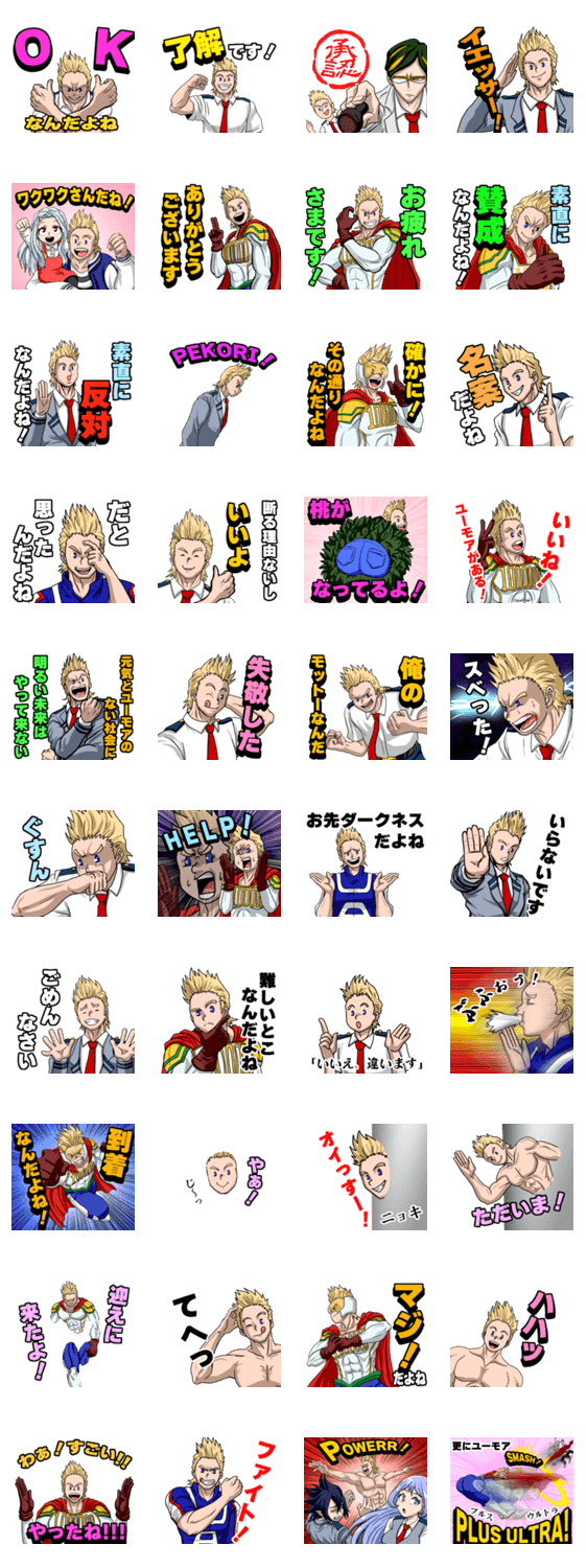 「僕のヒーローアカデミア」より ヒーロー《ルミリオン》こと通形ミリオのスタンプを作りました。時々服が脱げてしまいますが彼は依然、ルミリオンです ※LINE Creators Collaboration 僕のヒーローアカデミア参加スタンプです。