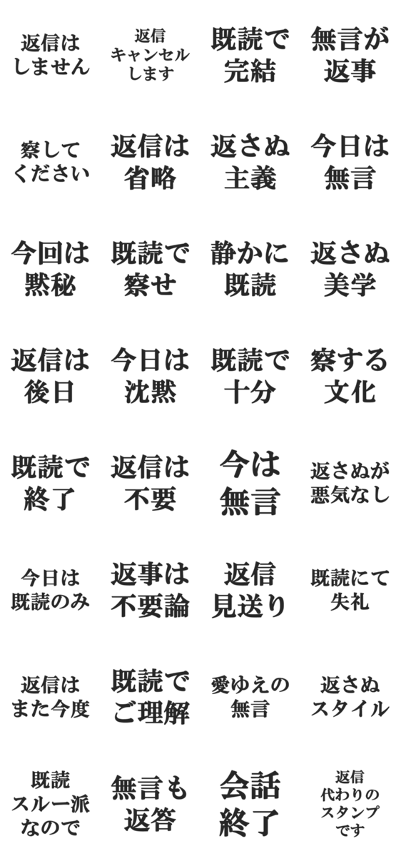 返信しない、返事しない、返答、返信キャンセル界隈、無視、シカト、既読スルー、既読無視、スタンプで返信、塩対応、チャット、文字だけ