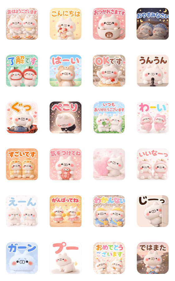 使いやすい文字入り表現で動くカラフルな飛び出すスタンプ♡うごく/挨拶/無難/可愛い/立体/ぬいぐるみ/ポップアップ/猫/3D/ねこうさぎの名前シリーズ/山田まぽん作