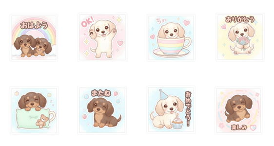 Cute pastel Dachshund pups! These fluffy puppies with sparkling eyes and cozy winter vibes bring pure healing to your chats. Perfect for Doxie lovers!