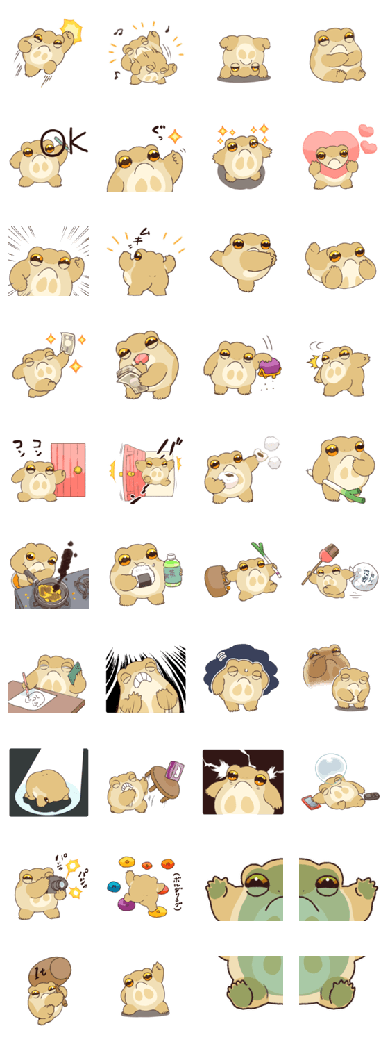 アメフクラガエルのフクラさんのスタンプです。