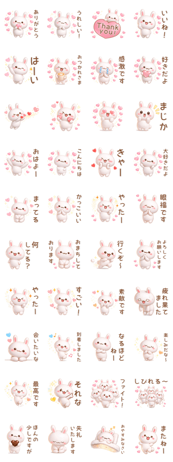 相手に気持ちを伝える、かわいいうさぎのスタンプです♪